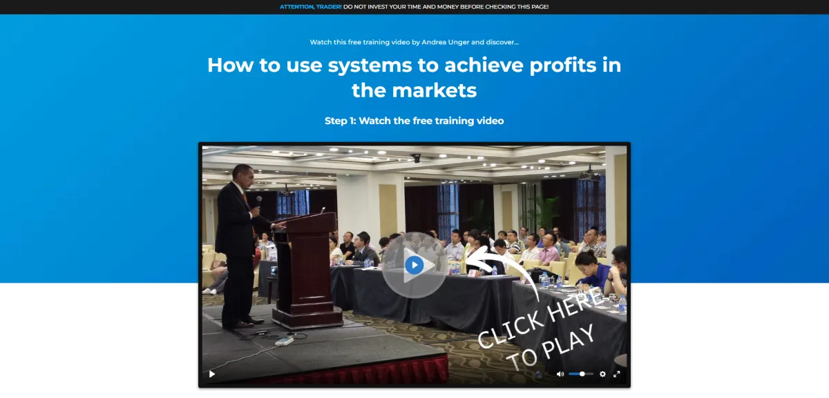 Step 2 - Exclusive Training: "How to use systems to achieve profits in the markets...without useless discretionary analysis!"